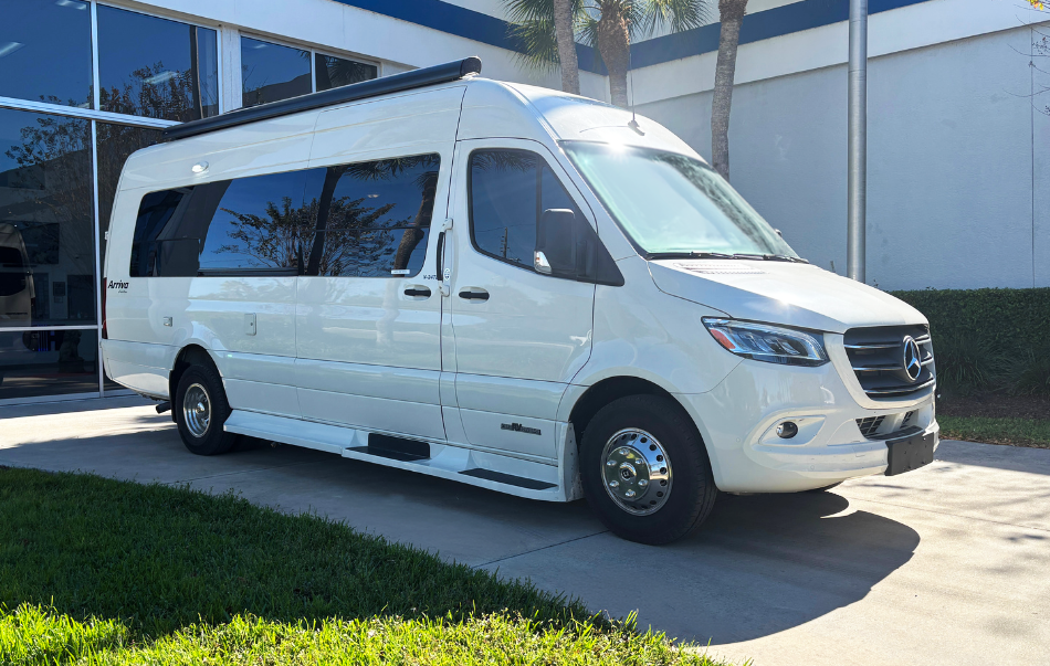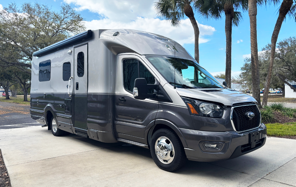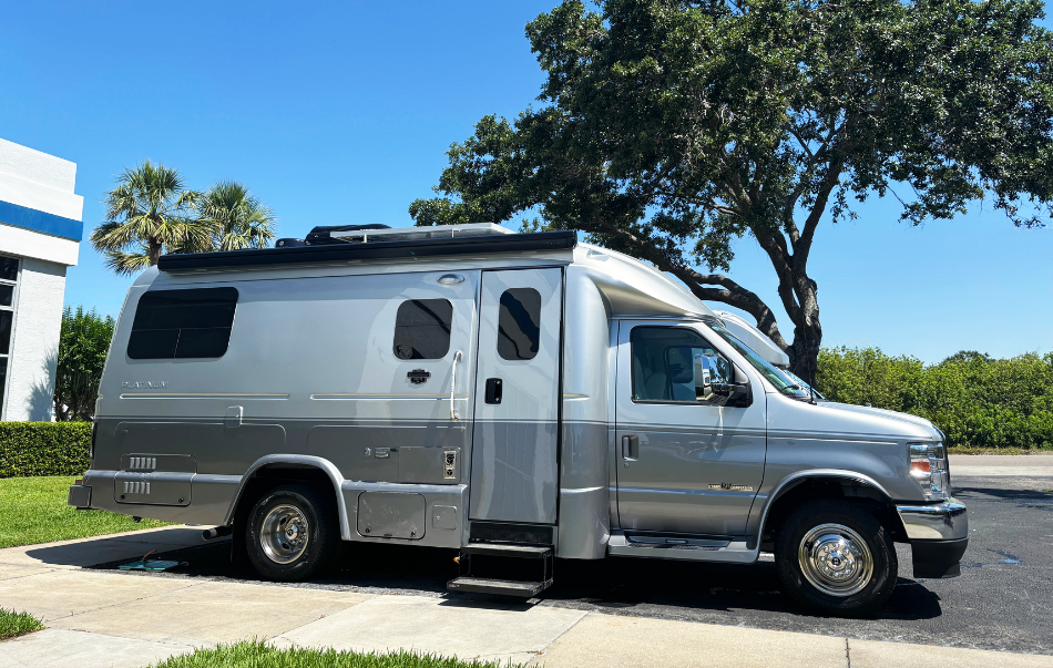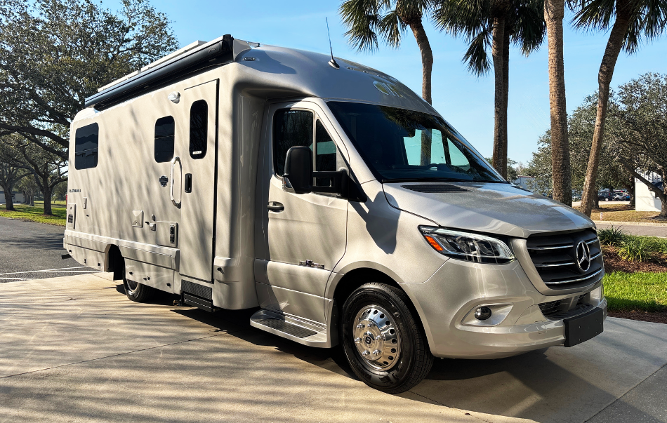 The Coach House Platinum (E-450 Ford), Platinum II (Mercedes), and Platinum III (Ford Transit) are downsized Class C motorhomes, also known as Class B-Plus. They provide spacious interiors without feeling too large on the road. The Arriva, a Class B motorhome, is built on a Mercedes Sprinter 3500 extended van chassis. Each model is fully self-contained, offering the comfort and convenience of home wherever you travel.